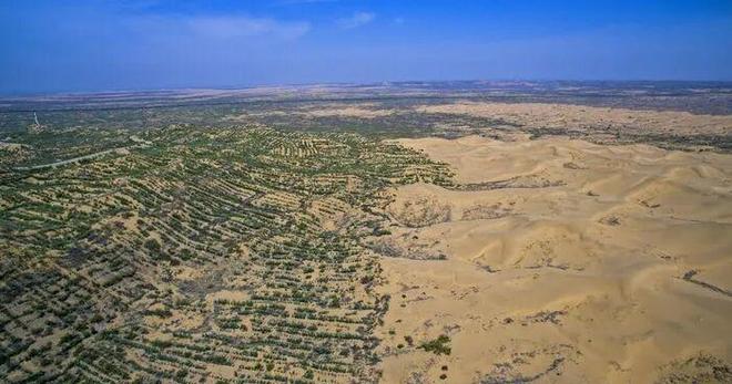 (2)生态意义: ①降低风速,减少风沙对农田和居民区的侵犯。 ② 固定沙土,阻止荒漠化的扩展。 ③ 提升植被覆盖率,改善局部小气候。